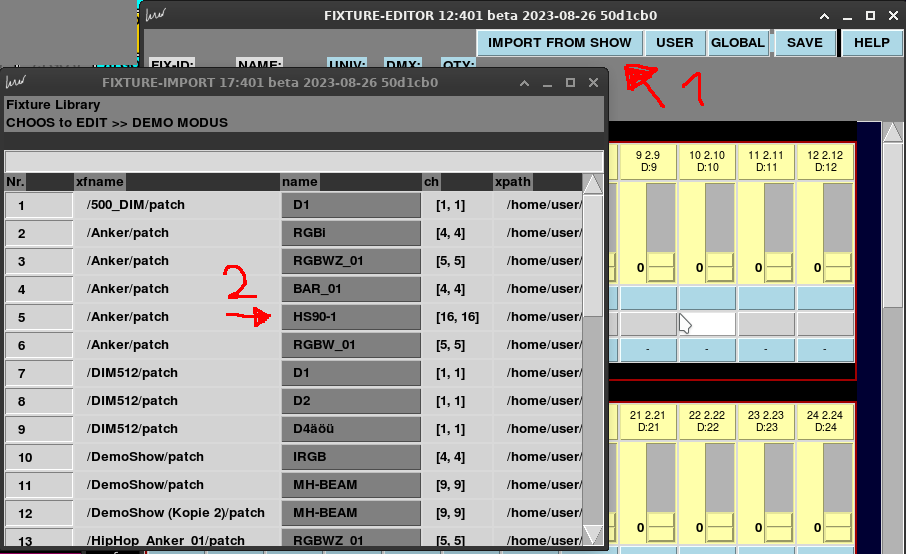 Das Patchfenster und das Fixturefenster